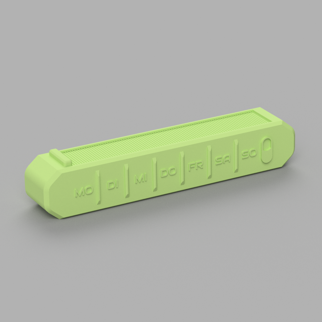Die 3D-gedruckte Medikamentenbox ist der ideale Begleiter für alle, die ihre Medikamente oder Vitamine übersichtlich, sicher und griffbereit aufbewahren möchten – ob zu Hause oder unterwegs.